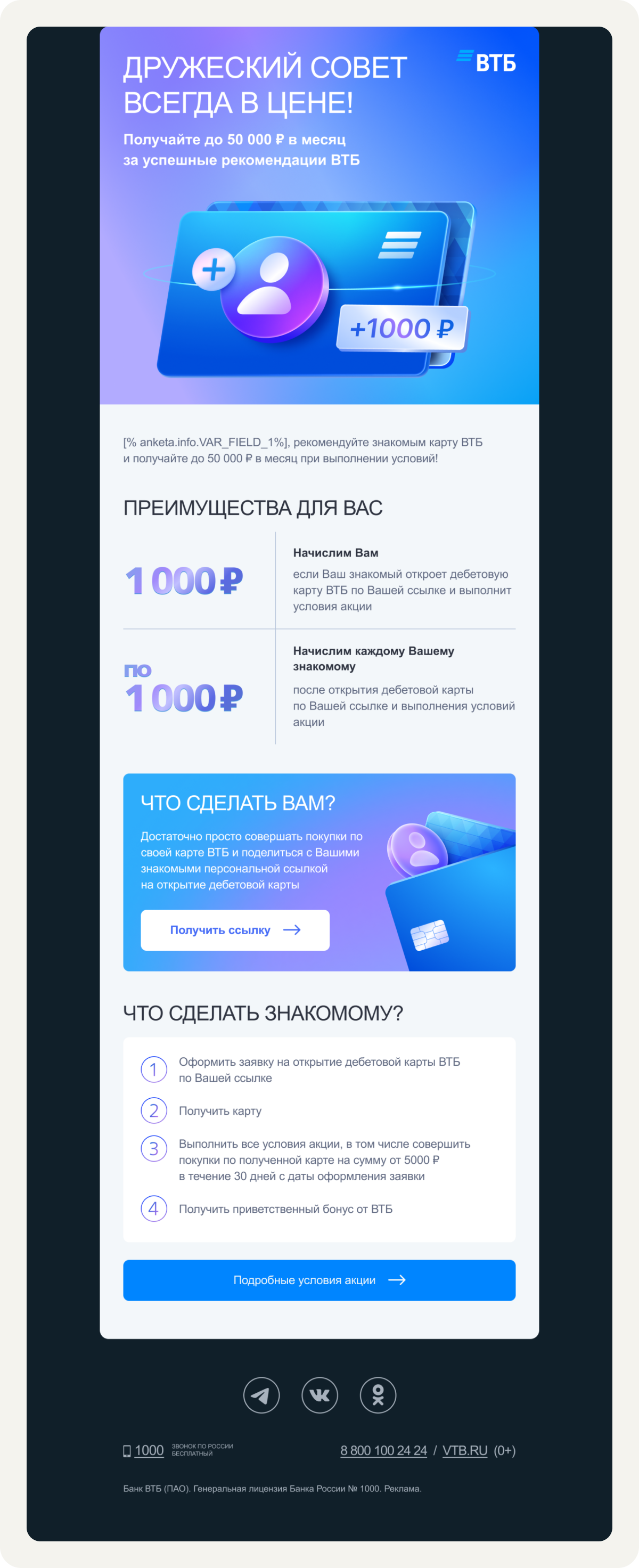 В промо-коммуникациях по-прежнему можно использовать яркие и выразительные решения. Ключевое требование — лёгкость для восприятия. Пользователь не должен тратить время на поиск оффера, разбираться в условиях или пробираться через нагруженный визуал. Всё важное должно быть видно сразу.