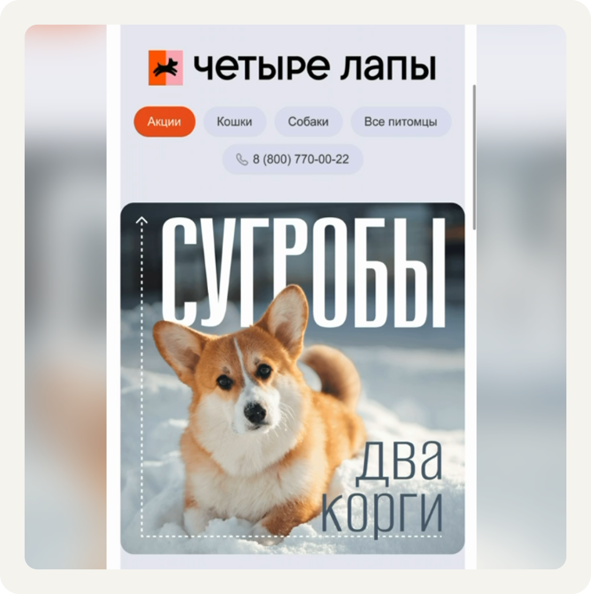 Второй кейс — «Четыре лапы» и их коммуникация «Сугробы в два корги»
