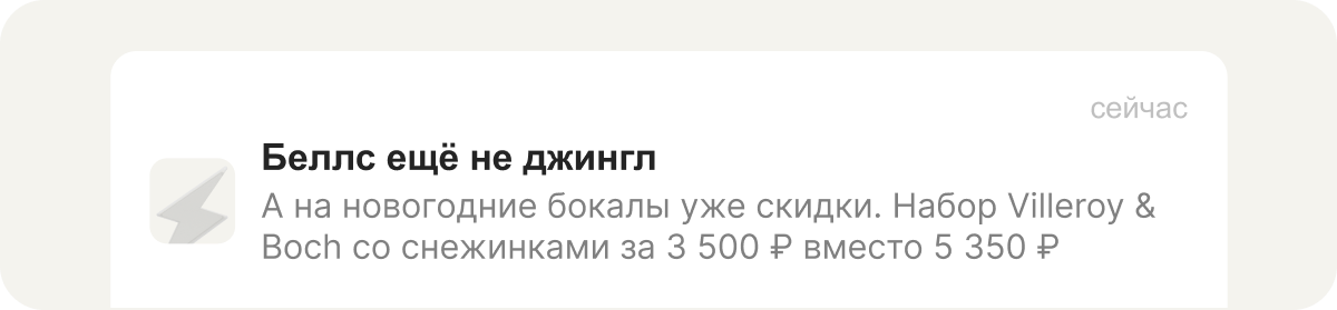 — добавлять игру слов, юмор, нестандартные эпитеты, смелые фразы, если это соответствует голосу бренда, для push и email — кликабельные темы с эмоциональным вовлечением;